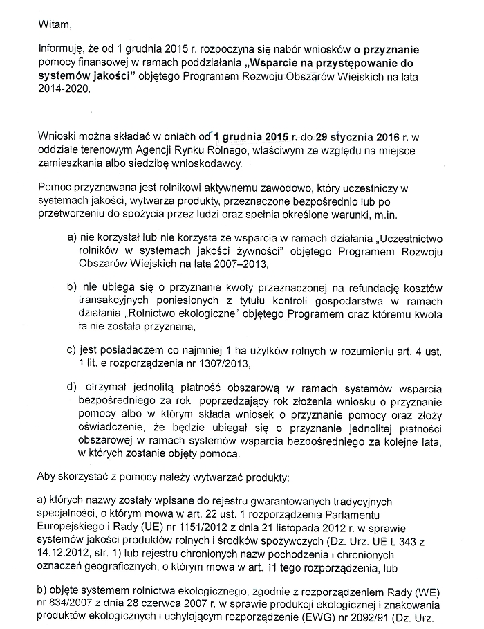 Nabór wniosków na "Wsparcie na przystępowanie do systemów jakości" 2015-12-02