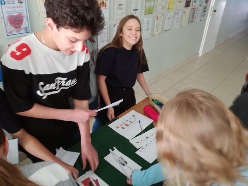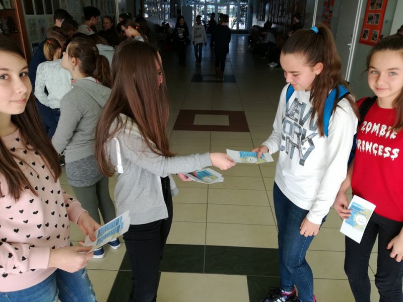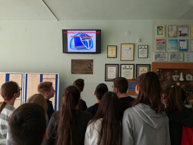 Kolejnymi adresatami działań stali się uczniowie. To dla nich przygotowano gazetkę informacyjną promującą bezpieczeństwo i kulturę w sieci, lekcje wychowawcze oraz zorganizowano specjalną „Przerwę na bezpieczny Internet”. Podczas niej uczniowie mieli okazję oglądną przygotowany przez uczestników projektu film edukacyjny ze wskazówkami dotyczącymi bezpiecznego korzystania z Internetu i kultury zachowania w Sieci. Otrzymali też specjalne ulotki pt. „Poznaj zasady bezpiecznego Internetu”. Uczniowie wzięli również udział w licznych grach i zabawach logicznych typu: puzzle, połącz w pary, kosz i walizka, rebusy, dzięki którym odkrywali pozytywne i negatywne przykłady zachowań w Internecie. Podobne zabawy logiczne - przy użyciu platformy LearnningApps- przygotowano dla uczniów na stronie internetowej projektu. Na stronie tej w postaci kodów zgromadzono także rady dotyczące bezpieczeństwa i kultury w Sieci. Warto podkreślić, że zarówno zabawy logiczne jak i kody zostały przygotowane w dwóch językach: polskim i angielskim. Z tych drugich korzystali również uczniowie ze szkół partnerskich. Nasi uczniowie natomiast mieli okazję obejrzeć filmy przygotowane przez partnerów z Hiszpanii oraz materiały poglądowe opracowane przez uczniów rumuńskich. Do przygotowanych na ten dzień materiałów mają dostęp wszyscy uczniowie, nauczyciele i rodzice, ponieważ zostały one zgromadzone i opublikowane na szkolnej witrynie internetowej jako specjalna tablica wykonana przy użyciu wirtualnej tablicy, jaką jest Padlet. To także na niej, używając aplikacji ThingLink zgromadzono ciekawe „Lekcje z K. Hołowczycem” z cyklu „3,2,1…Internet”. Uczniowie zostali również zaproszeni do udziału w konkursie literackim na opowiadanie, wiersz lub fraszkę pod hasłem "Tworzymy kulturę szacunku w sieci" oraz plastycznym plakat pod hasłem "Bądź kulturalny w sieci".