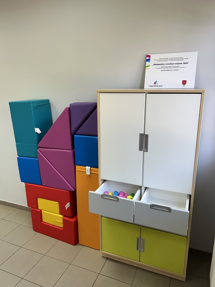 W świetlicy wiejskiej w Graboszycach zakupiono m.in. szafę, ścieżkę sensoryczną, tor przeszkód „rzeka z wyspami”, dwa zestawy półkul równoważnych, bum bum rurki, instrumenty muzyczne, chusty do rytmiki, klocki piankowe, siedziska, poduszki okrągłe oraz małe nagłośnienie. Nowe wyposażenie pozwoli na organizowanie zajęć rozwijających zmysły i umiejętności motoryczne dzieci, a także na realizację różnorodnych aktywności muzyczno-rytmicznych.