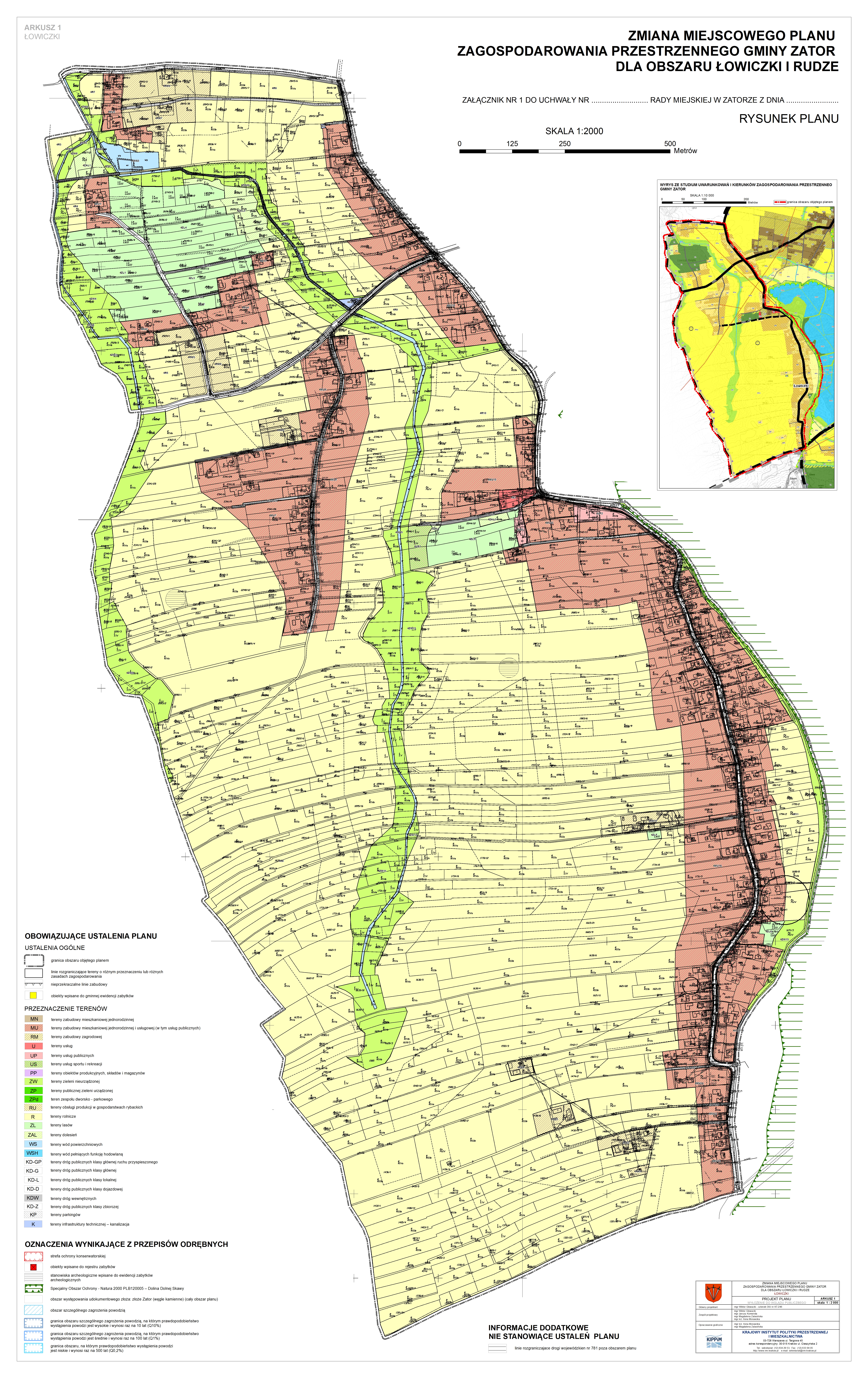 Stosownie do art. 17, pkt. 9 ustawy z dnia 27 marca 2003 r. o planowaniu i zagospodarowaniu przestrzennym (t.j. Dz. U. z 2017 r., poz. 1073 z późn. zm.) oraz do art. 39, ust 1 ustawy z dnia 3 października 2008 roku o udostępnianiu informacji o środowisku i jego ochronie, udziale społeczeństwa w ochronie środowiska oraz o ocenach oddziaływania na środowisko (t.j. Dz. U. z 2017 r., poz. 1405 z późn. zm.) a także stosownie do Uchwały Rady Miejskiej w Zatorze Nr XIII/126/15 z dnia 27 października 2015 r. w sprawie przystąpienia do sporządzenia zmiany miejscowego planu zagospodarowania przestrzennego Gminy Zator dla obszaru sołectw Łowiczki i Rudze, zawiadamiam o wyłożeniu do publicznego wglądu projektu zmiany miejscowego planu zagospodarowania przestrzennego Gminy Zator dla obszaru sołectw Łowiczki i Rudze.