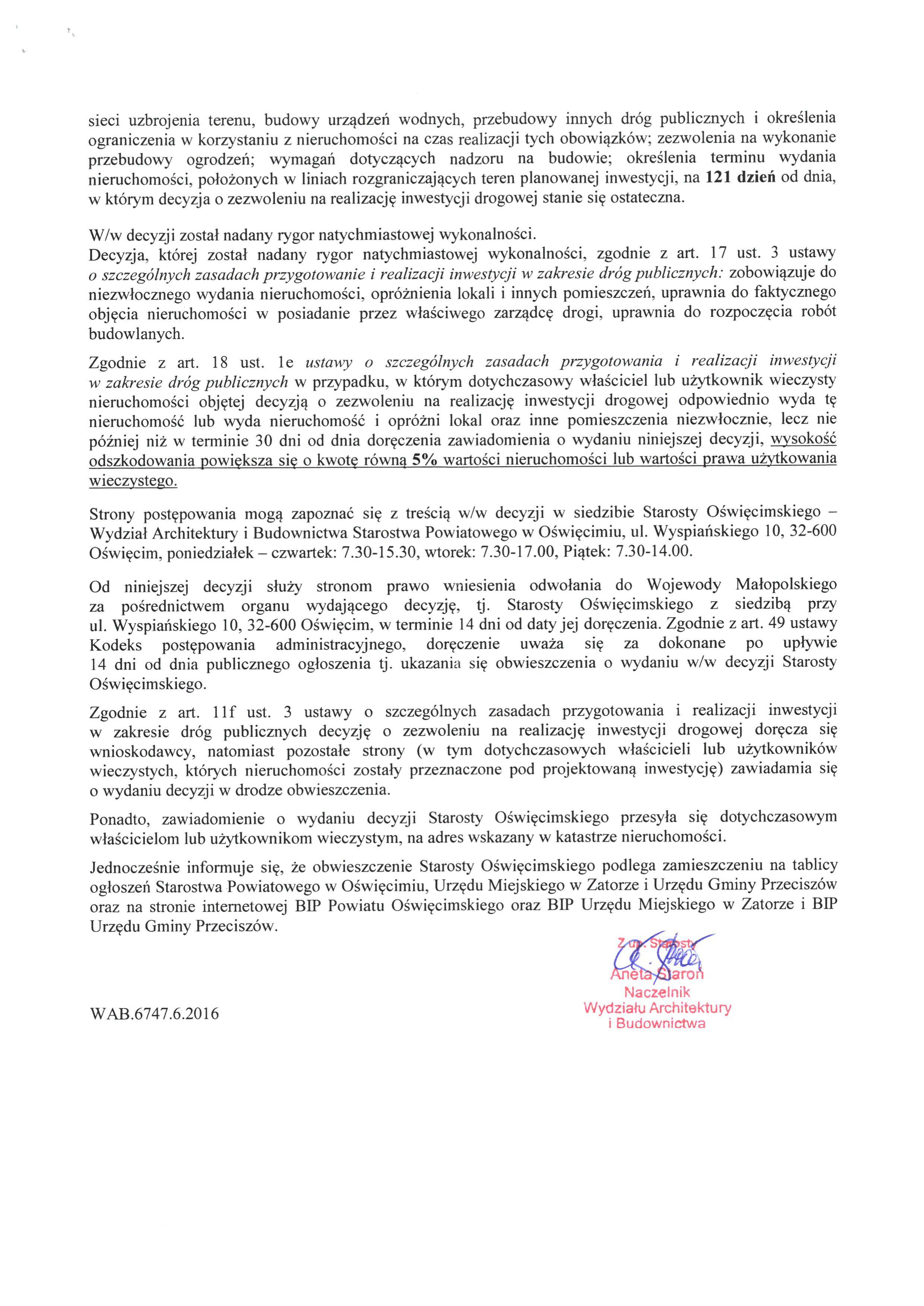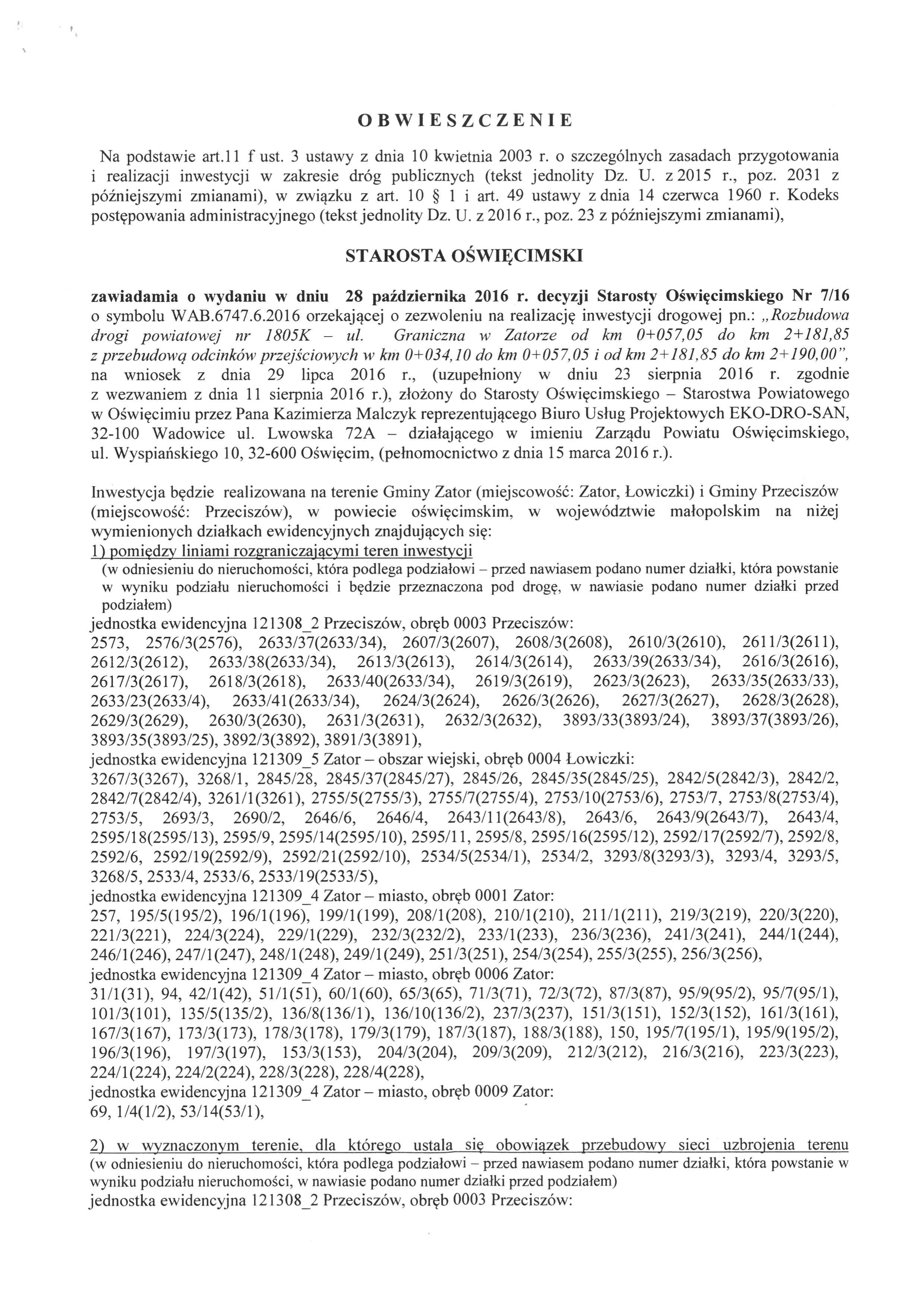 Obwieszczenie Starosty Oświęcimskiego 2016-11-02