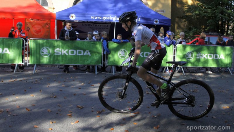Wyścigi w Głuchołazach rozpoczęły się od najmłodszych kategorii wiekowych. Tu już w pierwszym starcie nasza „żakini” Inez, odnotowała znakomity start zajmując drugie miejsce. Pod nieobecność Marcina Sermaka i Kamila Łazińskiego, w młodzikach reprezentował nas Maks Wiśniowski. Był to jego debiut w imprezie tej rangi i z taką obsadą. Startując z ostatniej pozycji pokonał kilkunastu rywali, ostatecznie plasując się w okolicy 20 miejsca . Michał Śliwiński, po znakomitym wyścigu zajął piątą lokatę wśród najlepszych polskich juniorów młodszych. W Juniorach, Stanisław Nowak nie dał szans konkurencji pewnie zwyciężając w swoim wyścigu. Staszek przypieczętował tym zwycięstwem znakomity sezon w barwach Sokoła, zdobywając w tym roku 3 medale Mistrzostw Polski – w tym 2 złote! Forma Gabrieli Wojtyły zachwyca w tym sezonie wszystkich. Zachwyca i zaskakuje. Tym razem, Gabi pewnie zwycięża w swojej kategorii do lat 23, pozostawia za sobą utytułowane zawodniczki elity, ulegając jedynie naszej reprezentantce na Igrzyska Olimpijskie w Rio – Katarzynie Solus Miśkowicz. Strata 1:36sek do liderki potwierdza znakomity postęp mieszkanki Graboszyc, od tego miesiąca, studentki ATH w Bielsku Białej.