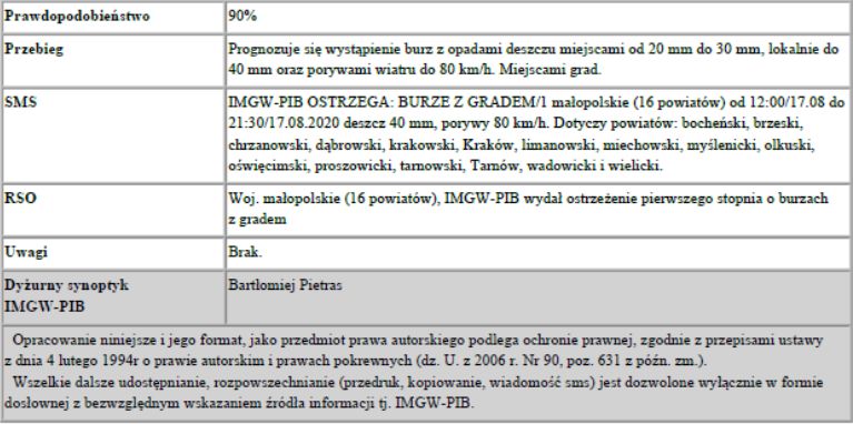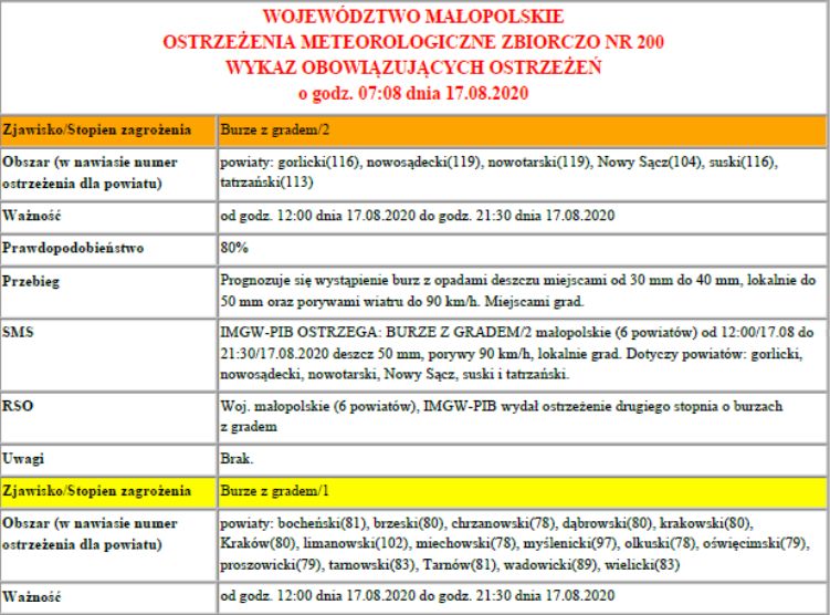Ostrzeżenie meteo: Burze z gradem/1 2020-08-17
