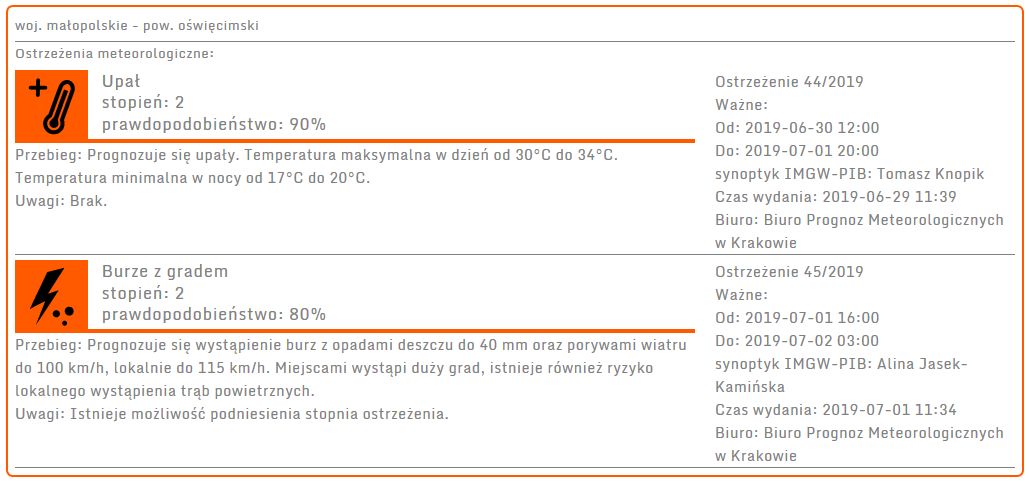 Ostrzeżenie meteo UPAŁ oraz BURZE Z GRADEM -2 2019-07-01