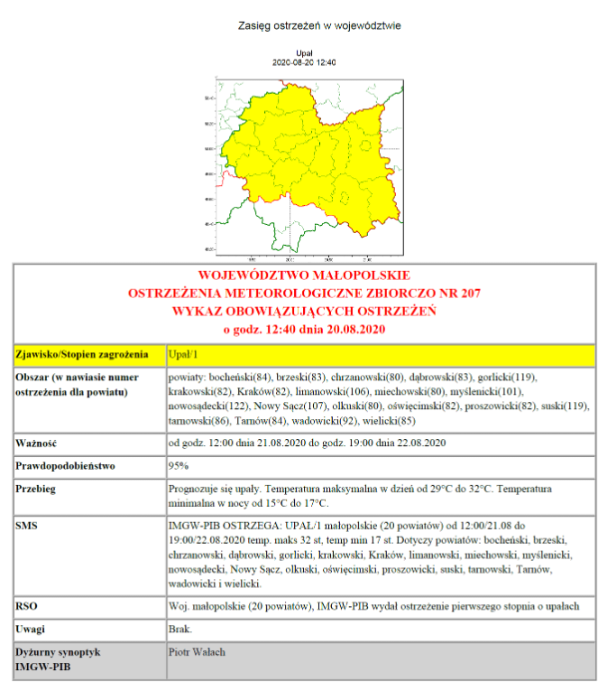 Ostrzeżenie meteorologiczne 82 - Upał/1 2020-08-20