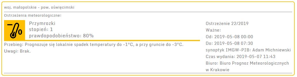 Ostrzeżenie meteorologiczne - Przymrozki/1 2019-05-07