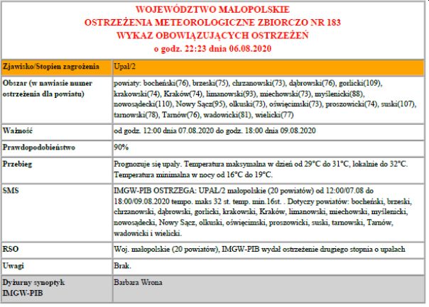 Ostrzeżenie meteorologiczne Upał/2 2020-08-07