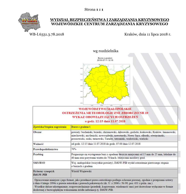 Ostrzeżenie meteorologiczne burze z gradem / 1 2018-07-11