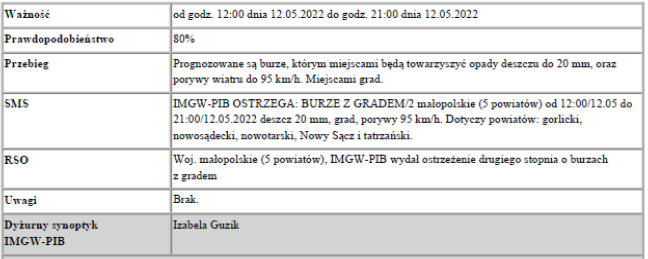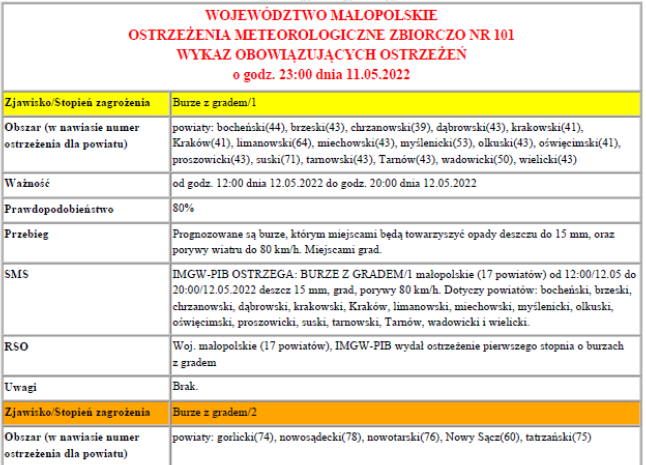 Ostrzeżenie meteorologiczne nr 101 - burze z gradem 1 2022-05-12