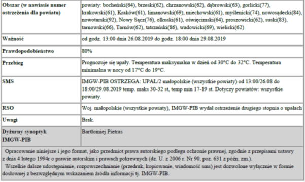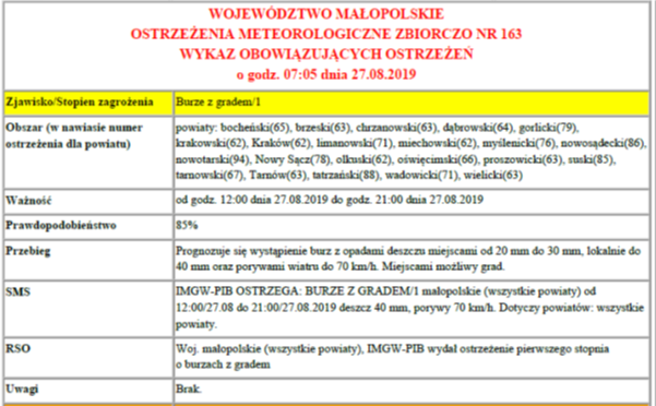 W związku z powyższym proszę podjąć stosowne działania zapobiegawcze i ostrzegawcze związane z ostrzeżeniem ludności oraz przygotować odpowiednie służby.