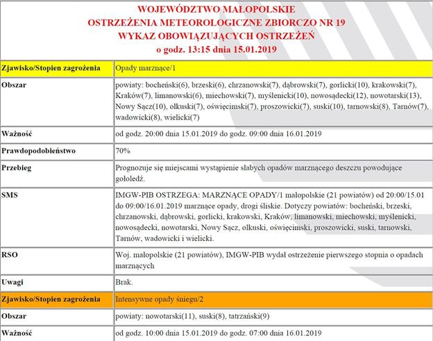 Ostrzeżenie meteorologiczne o marznących opadach/1 2019-01-15
