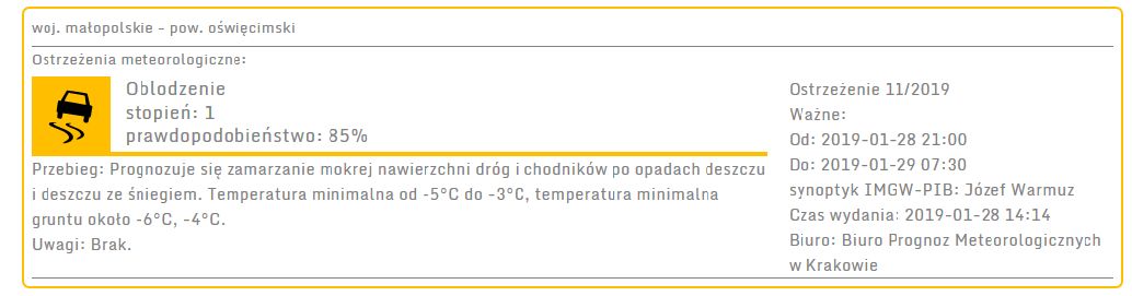 Ostrzeżenie meteorologiczne o oblodzeniach/1 2019-01-28