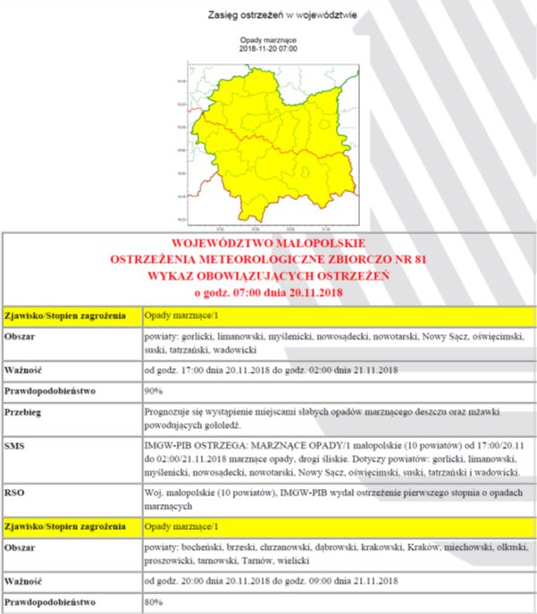 Ostrzeżenie meteorologiczne: opady marznące 1 2018-11-20