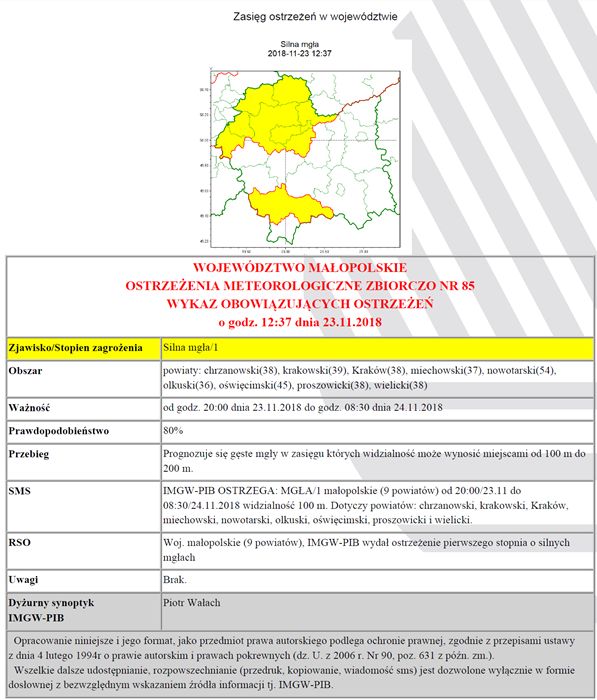 Ostrzeżenie meteorologiczne - silna mgła/ 1 2018-11-23