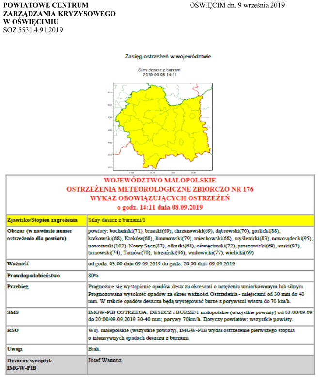 Ostrzeżenie meteorologiczne - silny deszcz z burzami/1 2019-09-09