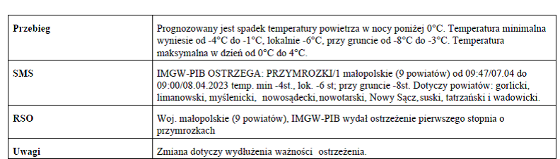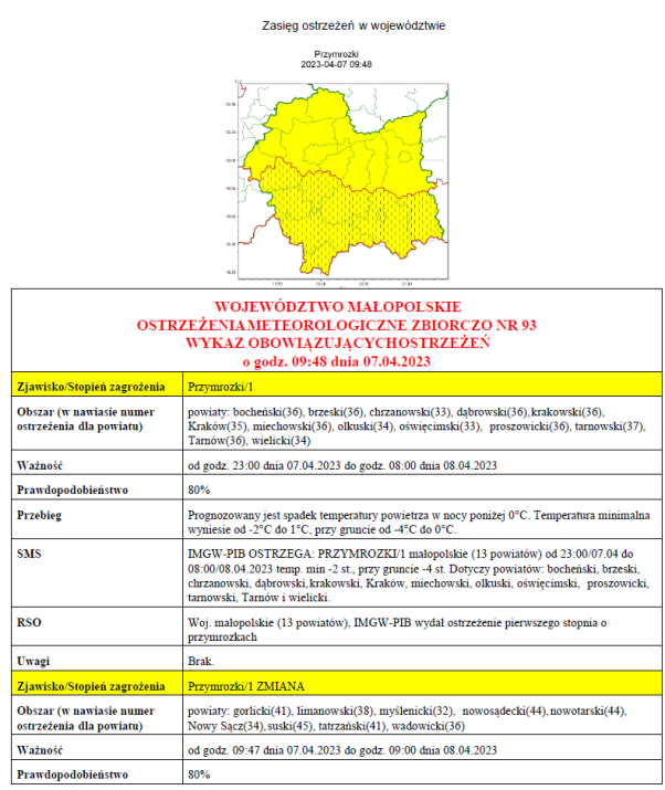 W związku z powyższym proszę podjąć stosowne działania zapobiegawcze i ostrzegawcze związane z ostrzeżeniem ludności oraz przygotować odpowiednie służby.