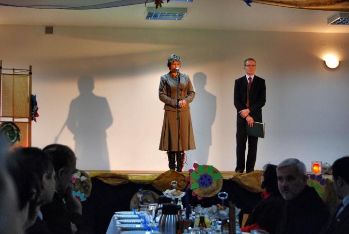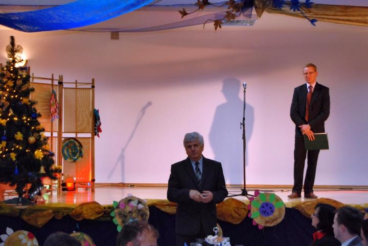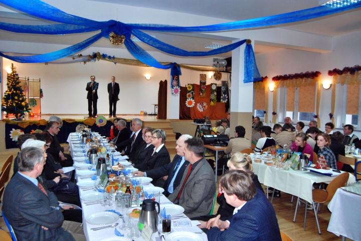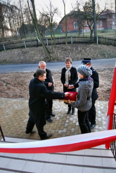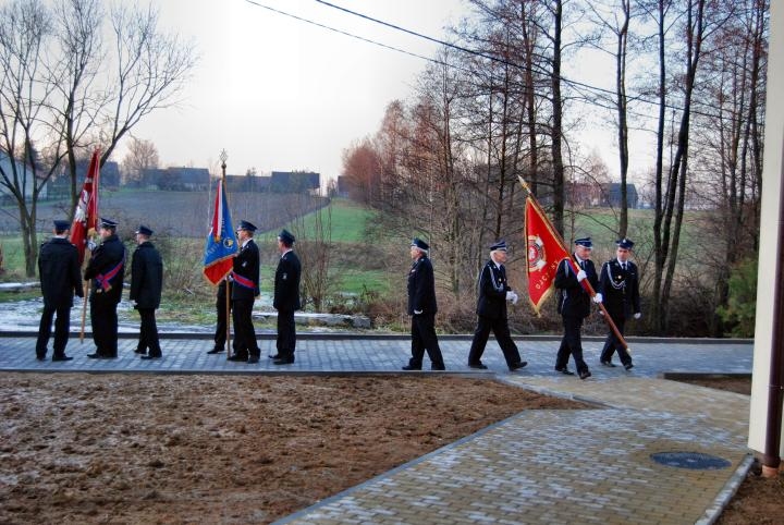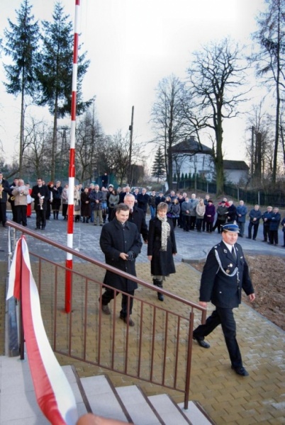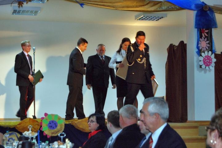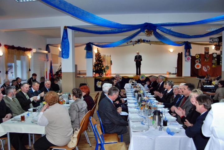 Dalsza część uroczystości odbyła się w sali widowiskowej nowego obiektu, gdzie w pierwszej kolejności wygłoszone zostały przemówienia okolicznościowe, podziękowania, gratulacje a także życzenia noworoczne. Podczas swoich wystąpień Burmistrz wraz z Przewodniczącym Rady Miejskiej wręczyli Prezesowi OSP oraz Przewodniczącej KGW okolicznościowe dyplomy i prezenty.