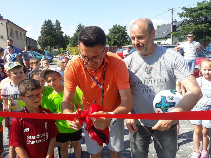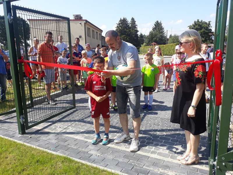 W związku z dużym zapotrzebowaniem na tworzenie miejsc do rekreacji wybudowano nowy obiekt sportowy – do uprawiania piłki nożnej, boisko o nawierzchni z trawy naturalnej. Boisko będzie otwarte i dostępne dla mieszkańców i uczniów tak samo jak Strefa Aktywności Sportowej. Na terenie obiektu obowiązuje taki sam regulamin jak całej strefy.