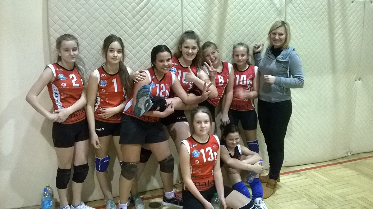 W trzecim meczu Oświęcimskiej Ligi Siatkówki Dziewcząt nasze Młodziczki odnoszą pierwsze zwycięstwo! Zatorzanki pokonały doświadczoną i utytułowaną ekipę ZSG 1 Kęty. Pierwszy set, to równorzędna gra obu zespołów do wyniku 13:13. Następnie nasze Zawodniczki uzyskały dwupunktową przewagę, powiększając ją by ostatecznie wygrać partię 25:20. Drugiego seta rozstrzygnęła dopiero końcówka , która również padła na korzyść najmłodszych zatorskich Siatkarek. Drugi set zakończył się wynikiem 25:22 i triumfem 2:0 w całym spotkaniu. Wygrana, to głównie zasługa naszej dobrej zagrywki, która z meczu na mecz jest coraz lepsza. Kolejne spotkanie młodych Siatkarek w OLS odbędzie się 17.12.2015 r. o godz. 17.30. Tym razem przeciwnikiem będzie drużyna SP1 Wola.