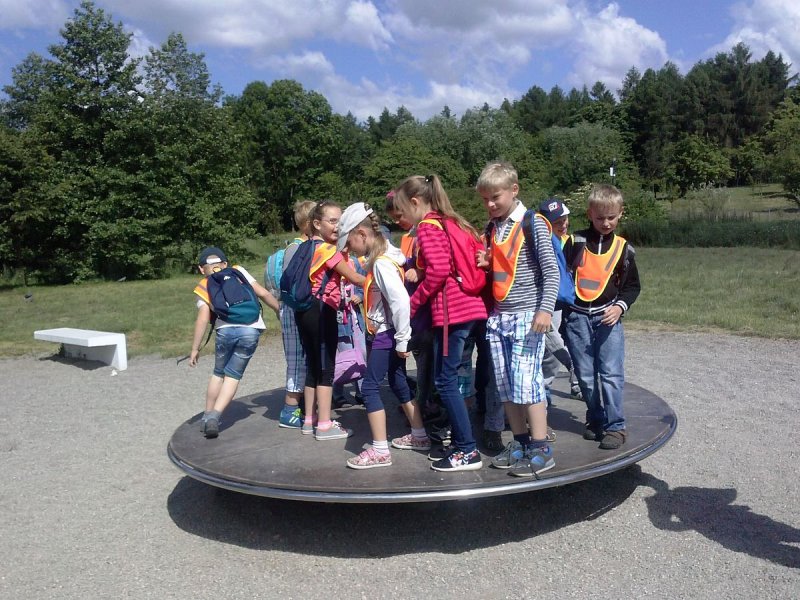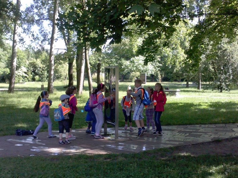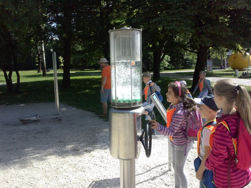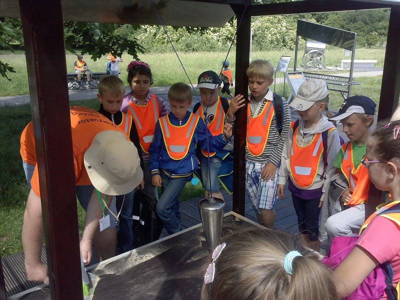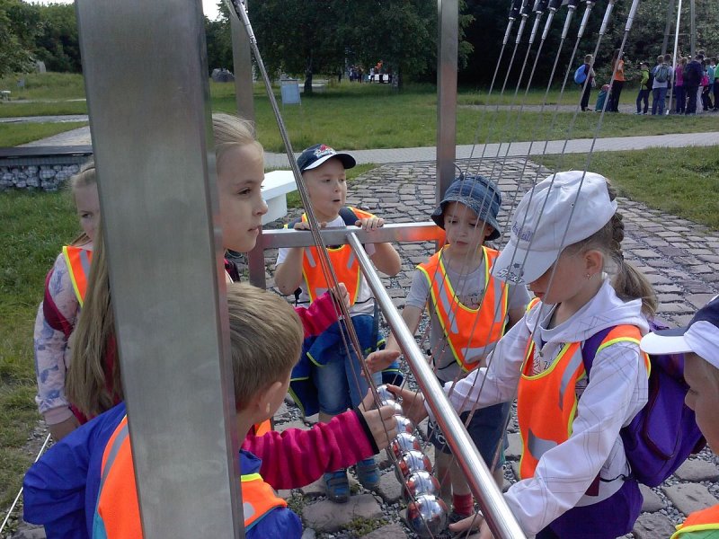 Następnie zwiedzaliśmy cały ogród, który położony jest na sześciu hektarach parkowej zieleni. Zobaczyliśmy tam oryginalne, duże urządzenia, których zadaniem było pobudzać nas do myślenia. Oprócz nauki również świetnie się bawiliśmy. Przyswajanie wiedzy stało się przyjemnością, gdyż mogliśmy korzystać z urządzeń obejmujących optykę, hydrostatykę, akustykę i mechanikę. „ Najbardziej podobał mi się kalejdoskop, przez który widać było wzorki, które się nigdy nie powtarzały. Zainteresowało mnie również wiaderko, do którego wsypywaliśmy piasek. Kiedy wiaderko się poruszało przez mały otwór wysypywał się piasek tworząc różne wzory.” - powiedziała Wiktoria. Według Paulinki „ najbardziej interesujące było doświadczenie z balonem, podczas którego elektryzowaliśmy włosy”.