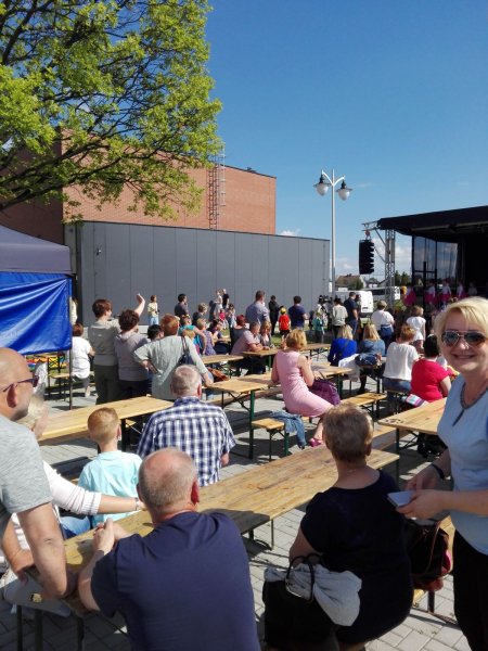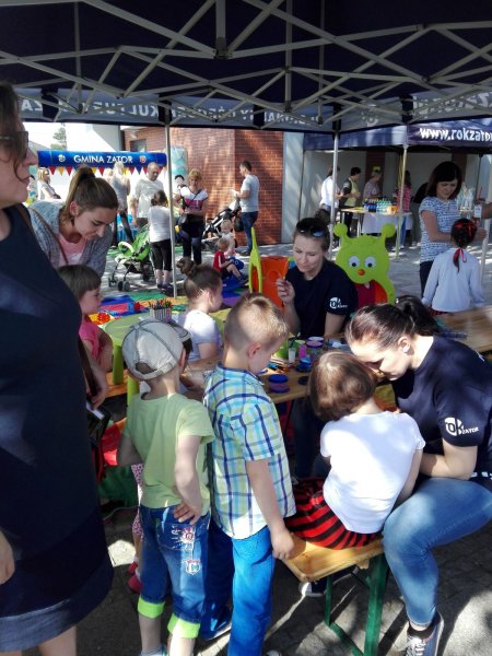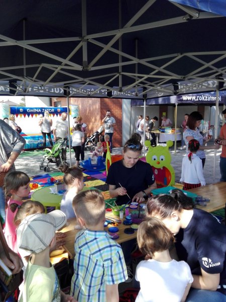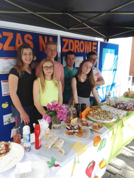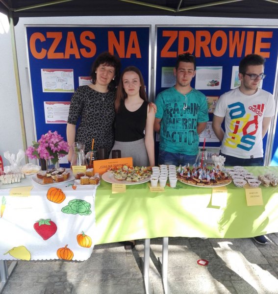 To nie był jednak koniec atrakcji, ponieważ od godz. 15.30 uczestnicy Pikniku przenieśli się do CAZ-u, gdzie czekały liczne rozrywki i atrakcje. W Strefie Zdrowej Żywności zorganizowanej w ramach projektu „Czas na Zdrowie” można było skosztować ciasta marchewkowego, babeczek owsianych, sałatek wiosennych, szaszłyków owocowych, rolady szpinakowej przygotowanych przez uczniów naszej szkoły pod bacznym okiem nauczycieli – J. Paluchowska oraz E. Frączek oraz przez Spółdzielnię uczniowską „Arkadia”. Ponadto można było nabyć produkty ekologiczne na stoiskach, które zaprosiliśmy do współpracy. Były to stoiska: Dolina Karpia z przetworami rybnymi, Tłocznia Chocznia ze świeżymi sokami, gospodarstwo pasieczne z Polanki wielkiej z przepysznymi miodami oraz Natur House. Kolejne stoisko kulinarne ze smakołykami, przekąskami przygotowała Rada Rodziców pod kierunkiem B. Cygan. Można było również skorzystać z bezpłatnych badań ciśnienia oraz poziomu cukru, które wykonywały wykwalifikowane pielęgniarki P. Marię Chwałek oraz Teresa Mularczyk. Było wystawione również stoisko z okazji 725- lecia miasta Zator z licznymi ciekawostkami historycznymi, gdzie można było podziwiać liczne eksponaty dzięki uprzejmości Towarzystwa Miłośników Ziemi Zatorskiej, które udostępniła Pani Prezes Towarzystwa – M. Fila Ponieważ nasi uczniowie brali udział w tegorocznym projekcie Erasmus+ zaprezentowali również na swoim stoisku fotorelacje z miesięcznych praktyk w Niemczech.