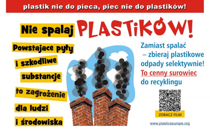 Nie spalaj plastików – powstające w dymie pyły i szkodliwe substancje to zagrożenie dla ludzi i środowiska. Zbieraj plastikowe odpady selektywnie – to cenny surowiec do recyklingu.