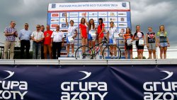 Innego tytułu nie można wymyśleć aby opisać wynik zatorskich zawodniczek w kategorii elity kobiet. Trzecia edycja Pucharu Polski rozegrana została na piekielnie trudnej trasie. Ciężka fizycznie, wymagająca technicznie i również sprzętowo runda, szybko zweryfikowała kto sięgnie po medale w tym dniu. Ciężkie podjazdy, karkołomne zjazdy, niezliczona ilość „dropów” i mega śliska nawierzchnia leśnych fragmentów trasy, preferowały zawodników „kompletnych”. Już po pierwszej rundzie, zatorzanki pokazały swoją moc, kończąc ją wspólnie z liderką Pucharu. Druga runda, to pokaz sił i walka na trasie. W wyniku ciągłych ataków Aleksandry Podgórskiej z prowadzącej trójki nieznacznie odpada Gabriela Wojtyła a Rita Malinkiewicz przetrzymuje ataki, jednak również traci do prowadzącej 10 sekund. Na trudnym technicznie i wymagającym fragmencie trasy, Rita dochodzi do liderki wyścigu i po chwili obejmuje prowadzenie. W połowie wyścigu wiadomo było, że to nasza zawodniczka będzie walczyć o zwycięstwo. Podgórska wycofuje się z rywalizacji i za plecami Malinkiewicz jest tylko Wojtyła. Po czwartej, z zaplanowanych sześciu rund, na trzeciej pozycji znajduje się kolejna z zatorzanek – Dagmara Drabik. Po morderczym, blisko dwu godzinnym wyścigu, komentator zawodów „nie może przestać wychodzić z zachwytu”. Trzy pierwsze miejsca dla zawodniczek jednego klubu! To nie zdarzyło się jeszcze w historii Pucharu Polski w kategorii kobiet. Ogromna radość została spotęgowana niespodzianką w postaci zwycięstwa naszej ekipy w klasyfikacji klubów.