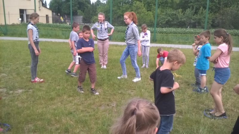 Harcerze zorganizowali także dla dzieci różnego rodzaju gry i zabawy na świeżym powietrzu. Był tor przeszkód i konkurencje sprawnościowe. Po zabawie wszyscy usiedli w kółeczku i śpiewali wspólnie piosenki (nie tylko harcerskie). Radości i śmiechom nie było końca…