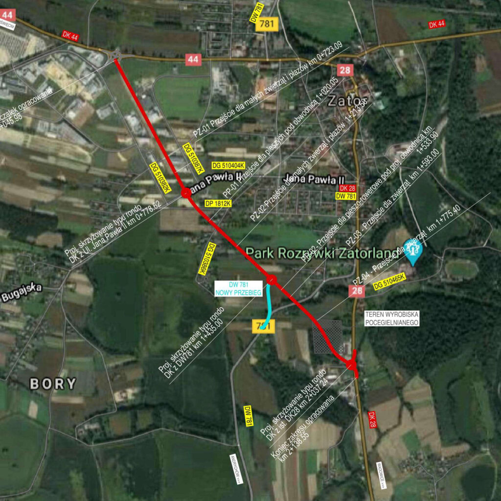 - powstanie nowa droga o długości 2,1 km, która będzie przebiegać od ronda na skrzyżowaniu DK44 (ul. 1-go Maja) i DW781 do stacji paliw przy DK28 (ul. Wadowicka).