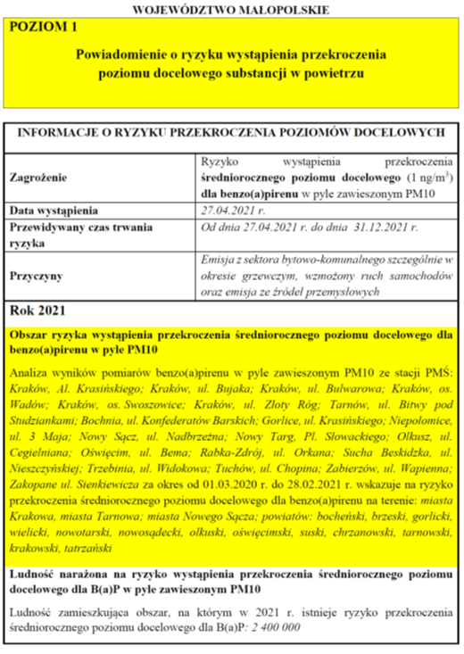 Przewidywany czas trwania ryzyka: od dnia 27.04.2021 r. do dnia 31.12.2021 r.