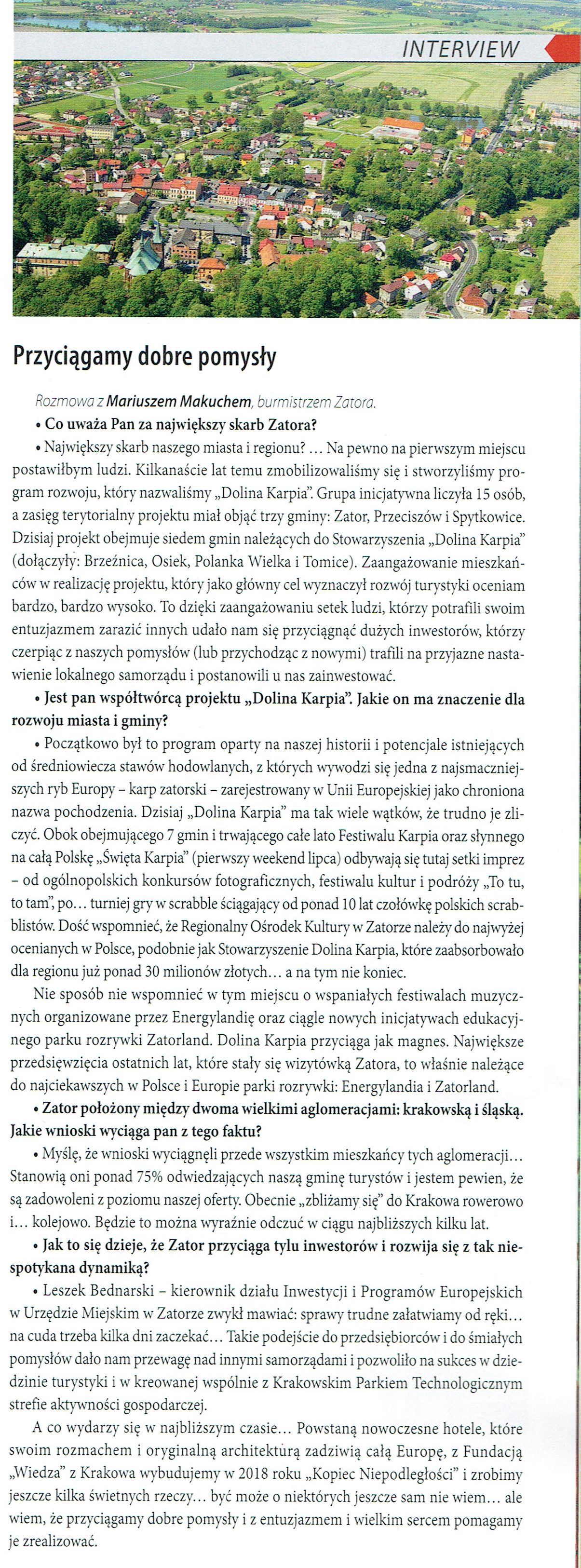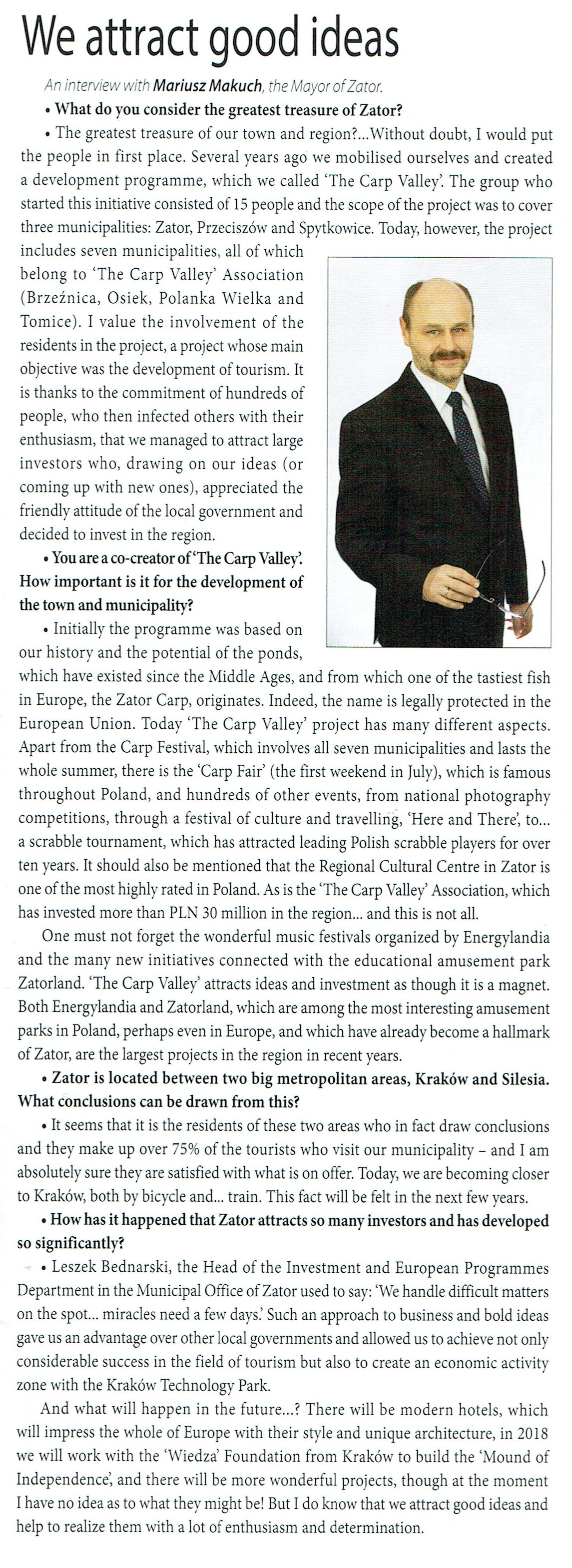 Przyciągamy dobre pomysły- rozmowa z Mariuszem Makuchem, burmistrzem Zatora 2016-07-01
