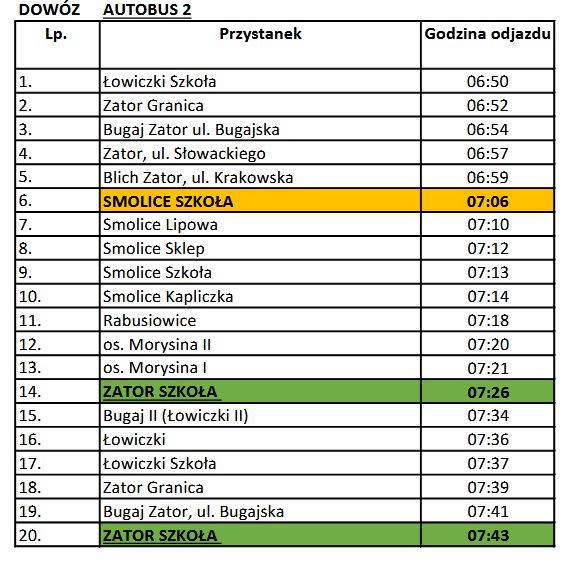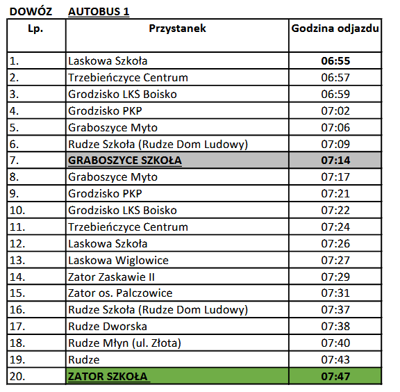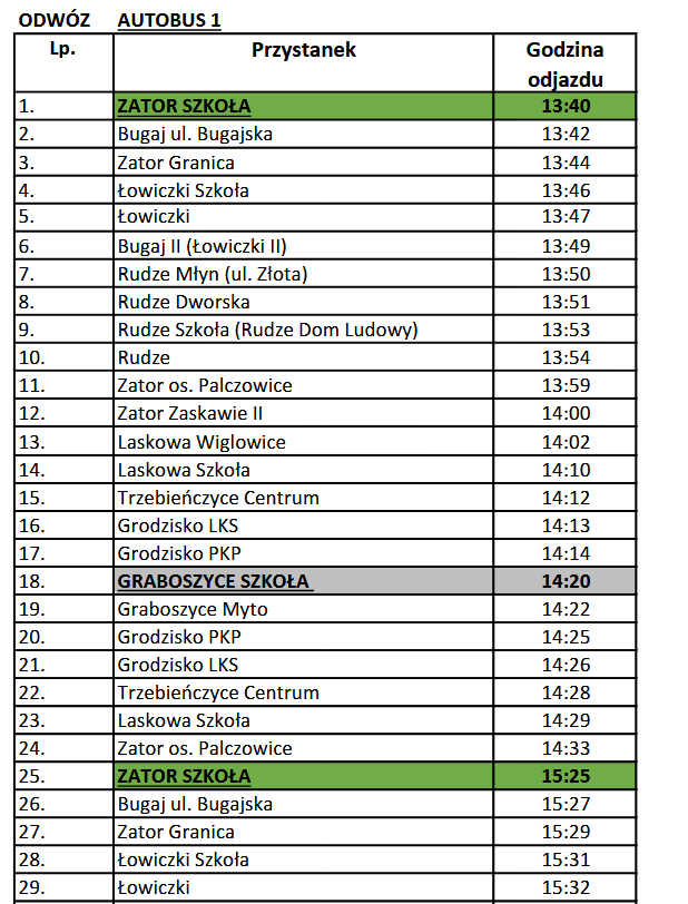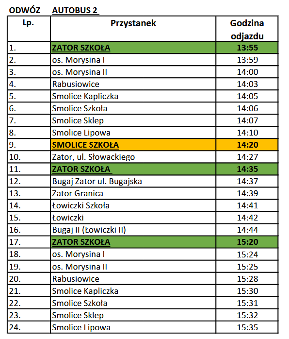 ROZKŁAD JAZDY AUTOBUSU SZKOLNEGO 2024-10-30