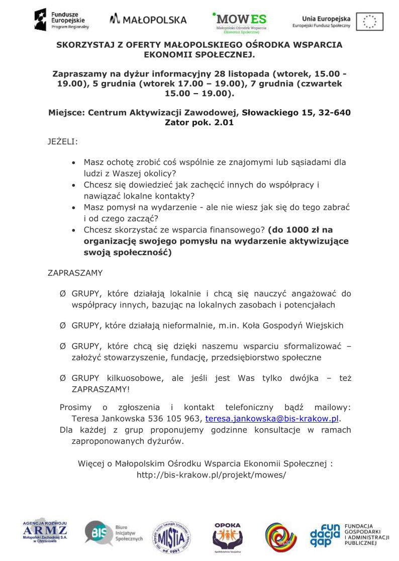 SKORZYSTAJ Z OFERTY MAŁOPOLSKIEGO OŚRODKA WSPARCIA EKONOMII SPOŁECZNEJ 2017-11-24