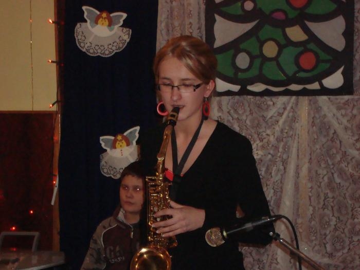 Młodzież ubrana w epokowe stroje zaprezentowała jasełka, utwory na flet, saksofon, wystąpili również soliści.