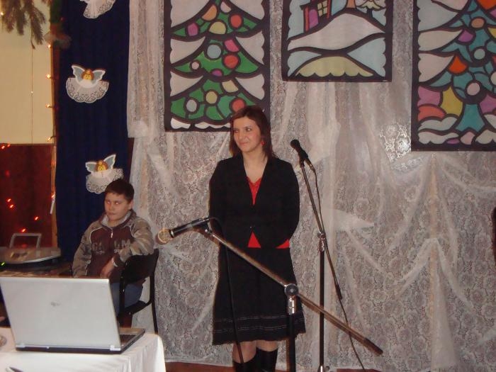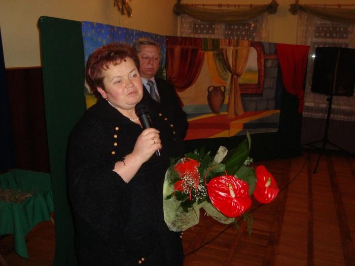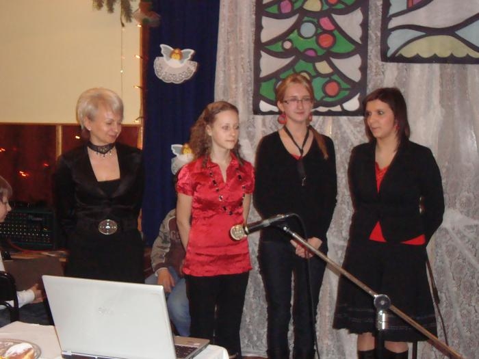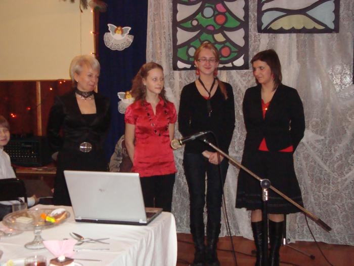 W odświętnie przystrojonej sali płonęły świece, a stoły nakryte białymi obrusami zdobiły słodkości, owoce,stroiki. Panował miły nastrój i wzruszenie.