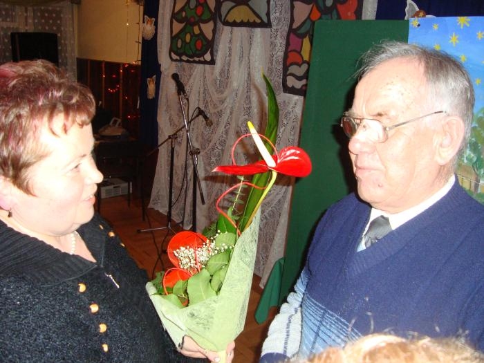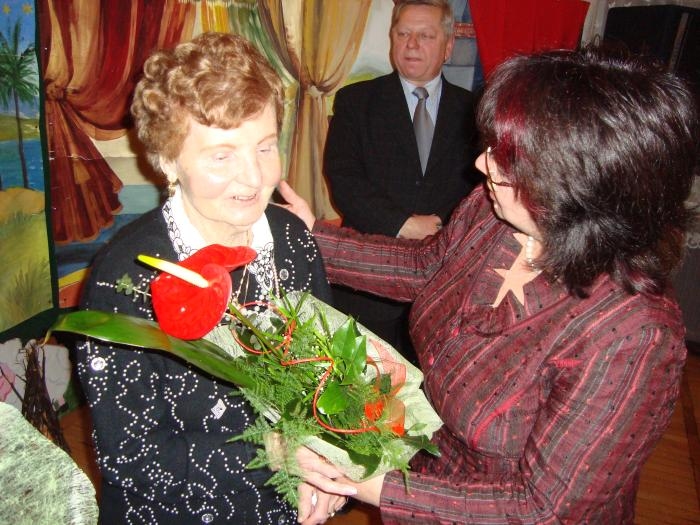 Najzacniejszym seniorom uczestniczącym w spotkaniu w imieniu Burmistrza Zatora i Przewodniczącego Rady Miejskiej Sekretarz Zatora wraz z przedstawicielką TMZZ złożyły życzenia i wręczyli kwiaty.