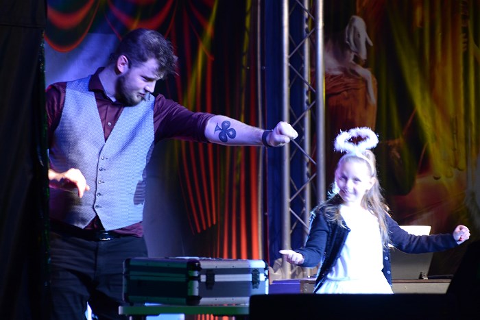 Imprezę rozpoczął tradycyjnie gość specjalny. W tym roku był nim znany iluzjonista- Dawid Wilczyński. Zachwycił on publiczność ogromnym poczuciem humoru i swoimi niezwykłymi, magicznymi umiejętnościami. Widzowie- również ci zaproszeni na scenę- z zapartym tchem przyglądali się znikającym