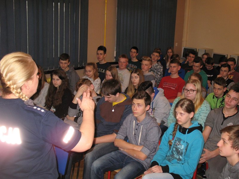 W trakcie zajęć z gimnazjalistami policjanci podwali uczniom sposoby postępowania w przypadku, gdy ktoś stanie się ofiarą cyberprzemocy. Poinformowali również, gdzie można zwrócić się o pomoc. Mundurowi uświadomili uczniom, jakie konsekwencje karne grożą nieletnim za różnego rodzaju czyny, dokonane za pośrednictwem Internetu lub telefonu (np. stalking, czyli uporczywe nękanie, umieszczanie obraźliwych wpisów pod adresem innych osób lub publikowanie zdjęć i filmów bez zgody osoby sfotografowanej). Prelegenci przestrzegli również młodzież przed różnego rodzaju używkami, takimi jak: alkohol, narkotyki, czy dopalacze i uświadomili im szkodliwość działania tego typu środków odurzających.