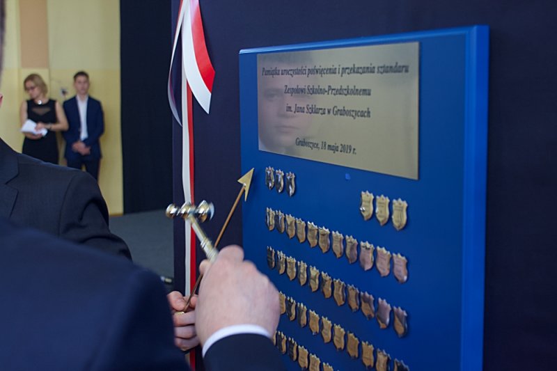 Na sztandarze, oprócz białego orła znalazł się wizerunek Jana Szklarza oraz słowa „Bóg, Honor, Ojczyzna, Nauka”. - To jedyne miejsce na świecie, w którym czci się pamięć mojego Ojca, który nie ma nawet mogiły - to słowa Andrzeja Szklarza, syna Jana, który wsparł mocno inicjatywę nadania graboszyckiej placówce imienia Jana Szklarza. Andrzej Szklarz przekazał też kilka bezcennych pamiątek. Wśród nich znalazł się m.in. uszkodzony zegarek, który do rodziny trafił wraz z zawiadomieniem o śmierci Jana Szklarza.