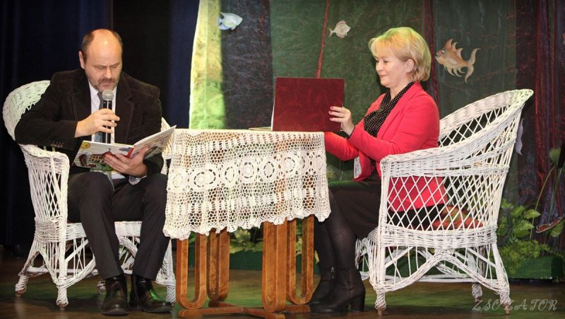 8 listopada 2017 r. zebraliśmy się wszyscy (uczniowie i nauczyciele) w Regionalnym Ośrodku Kultury wraz z zaproszonymi gośćmi: naszym kochanym burmistrzem Mariuszem Makuchem, prezesem Koła Łowieckiego panem Markiem Bagierem, panią prezes Banku Spółdzielczego w Zatorze Katarzyną Lalik, panią kierownik Biblioteki Publicznej w Zatorze Lidią Baluś, panią dyrektor ROK-u Elżbietą Mostowik i przedstawicielem Towarzystwa Miłośników Ziemi Zatorskiej panem Jackiem Cichoniem, aby oglądnąć przedstawienie teatralne grane przez uczniów szkolnego Koła Teatralnego „Dzieci Melpomeny”. Sztuka teatralna „Rollercoaster przez wieki” dotyczyła historii naszego miasta i osób związanych z regionem (m.in. Pawła z Zatora, Henrietty Ankwiczówny, Prof. Stefana Grzybowskiego, hr. Maurycego Potockiego). Druga część przedstawienia to inscenizacja bajki zatorskiej o królewskim karpiu. Każdy z widzów z zainteresowaniem śledził oczami naszych młodych aktorów, którzy wielokrotnie rozweselali publiczność. Po pięknie zagranej sztuce mieliśmy przyjemność uczestniczyć w Happeningu Cały Zator czyta… i posłuchać bajek w wykonaniu naszych wspaniałych gości.