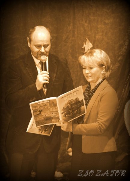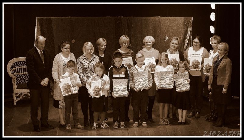Kolejnym elementem tego święta była prezentacja książeczki (w formie ćwiczeń) Moja Gmina Zator stworzonej przez nauczycieli klas I-III. Pani dyrektor Renata Pękala zaprosiła na scenę twórców i opowiedziała o tym niezwykłym projekcie powstałym w ramach edukacji regionalnej pod kierownictwem pani Danuty Skrzypek. Pan Burmistrz podziękował nauczycielkom i wręczył książeczki przewodniczącym klas I-III (dla każdego ucznia po jednym egzemplarzu).