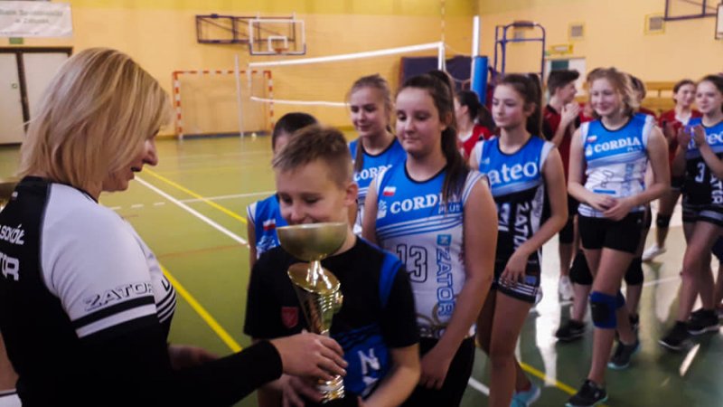 W sobotę 7 grudnia sportowa młodzież rywalizowała w Turnieju Siatkarskim o Puchar Burmistrza Zatora. Oprócz drużyn gospodarza zawodów –Sokoła Zator , do boju stawiły się również zaprzyjaźnione zespoły z SP 1 i SP5 w Wadowicach, SP w Wysokiej i drużyna Sokół nr 2 z SP w Laskowej. Wszystkie drużyny rozegrały po cztery mecze do dwóch wygranych setów. Drużyny Sokoła radziły sobie ze zmiennym szczęściem. Rozpoczęły od meczu przeciwko sobie. Lepszy okazał się Sokół 1. Drużyna z Laskowej trenująca w UKS Sokół, po raz pierwszy wystartowała w turnieju siatkarskim szóstek. Mimo to świetnie dawała sobie radę w meczach z doświadczoną młodzieżą z innych drużyn. Wysoka wygrała z Laskową dopiero po tie breaku, a zwycięzca turnieju przeżył chwilę grozy, gdy Laskowiacy byli o krok od wyrwania im punktu. Sokół 1 przyzwyczaił nas do emocji. Dopiero ostatni, dziesiąty mecz turnieju, pomiędzy SP1 a Sokołem 1 miał zdecydować o klasyfikacji końcowej turnieju. Sokół wygrał pierwszego seta, przegrał drugiego. Było jasne, że turnieju już nie wygra, ale stawka toczyła się do końca o miejsce 2 lub 3. No cóż, jaka piękna i nieprzewidywalna jest ta SIATKÓWKA . Tylko SOKÓŁ Zator pokonał SP1 Wadowice zapewniając sobie drugie miejsce na podium. Do pierwszego brakło 1 małego punktu.