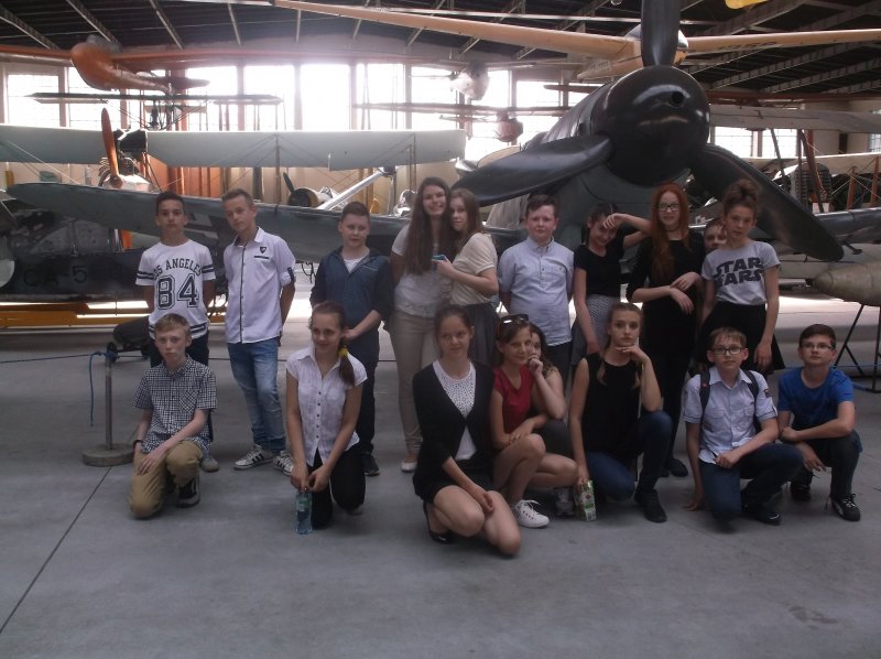 Ostatnim punktem wycieczki było Muzeum Lotnictwa Polskiego. Tam gromadzone są eksponaty związane z historią rozwoju lotnictwa. Uczniowie mogli poznać dzieje lotnictwa oraz spróbować swoich sił w pilotowaniu samolotu na symulatorze lotów. Ekspozycja jest imponująca, bo liczba statków powietrznych przekracza 200. Największe zainteresowanie (zwłaszcza wśród męskiej części zwiedzających) wzbudzały zgromadzone tam działa i armaty. Wszyscy chętnie też zwiedzili wnętrze papieskiego helikoptera.