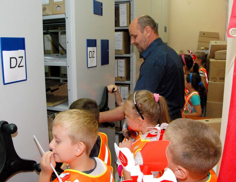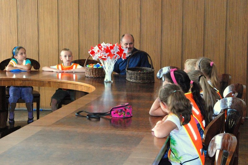 Podczas spotkania dzieci miały okazję zobaczyć m. in. gabinet Burmistrza, salę sesyjna oraz urzędowe archiwum.