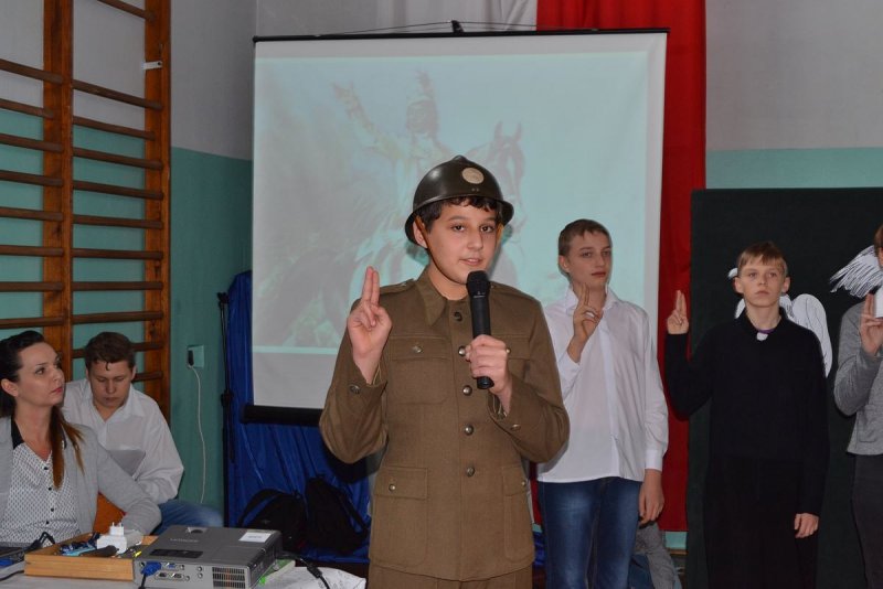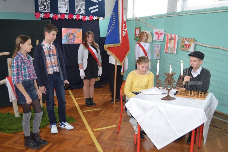 W związku z tym uczniowie wraz z opiekunami przygotowali przepiękny i niezwykle wzruszający montaż słowno-muzyczny, który zaprezentowali w trakcie akademii, osobno dla uczniów szkoły podstawowej i gimnazjum.