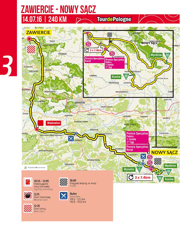 W związku z przejazdem kolarzy biorących udział w Tour de Pologne przez Gminę Zator Urząd Miejski w Zatorze informuje o utrudnieniach w ruchu drogowym. W dniu 14 lipca 2016 r. (czwartek) w ramach 3 etapu Zawiercie - Nowy Sącz