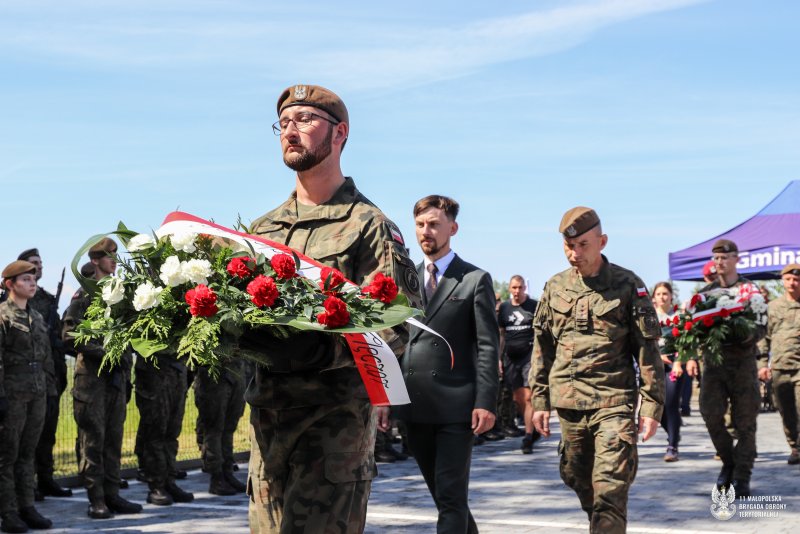 „Drodzy Terytorialsi, którzy złożyliście dziś przysięgę, dziękuję za służbę państwu polskiemu i wstąpienie w szeregi sił zbrojnych RP, za niezłomną postawę niesienia wsparcia i pomocy. Jesteście spadkobiercami tradycji Armii Krajowej. Znak Polski Walczącej jest na waszych mundurach, a patronem jest gen. Leopold Okulicki ps. Niedźwiadek. Te symbole świadczą o tym, kim jesteście i konstytuują wasze działania” powiedział Minister Obrony Narodowej Władysław Kosiniak-Kamysz do żołnierzy podczas uroczystej przysięgi na limanowskim rynku. Wcieleni żołnierze do propagowania idei Armii Krajowej przygotowywali się przez 16 dni. Intensywne szkolenie, zakończone egzaminem poligonowym tzw. „pętlą taktyczną”, otworzyło drzwi do służby w szeregach małopolskich terytorialsów. Ich uroczysta przysięga wpisuje się w misję jednostki, która wspiera Małopolan już od 6 lat. Wydarzenie jest częścią obchodów 80. rocznicy zrzutu cichociemnych w Wierzbnie koło Proszowic. Ostatnia konspiracyjna misja gen. Leopolda Okulickiego miała kluczowe znaczenie dla dalszych losów Armii Krajowej i przebiegu Powstania Warszawskiego. Gen. Okulicki jest też patronem żołnierzy z polską walczącą na mundurach.