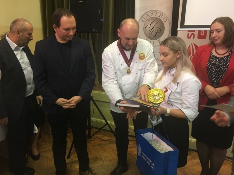Nasza uczennica oprócz nagród rzeczowych zdobyła trzytygodniowy płatny staż w najlepszej krakowskiej restauracji Wierzynek, tygodniowy staż w Restauracja KRAJOBRAZY Hotel Kopieniec Fizjo-Med & SPA oraz voucher o wartości 1000zł na wybrane szkolenie z zakresu gastronomii.
