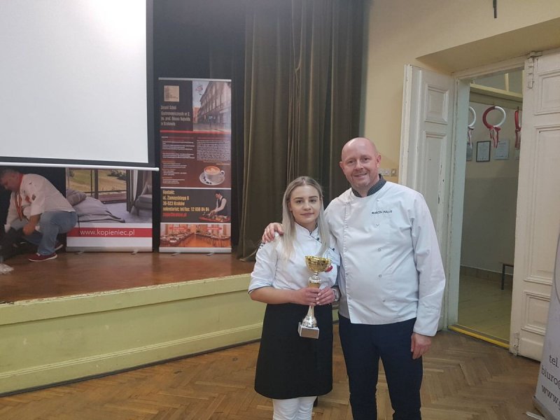 Dominika przygotowywała się pod okiem nauczycieli przedmiotów gastronomicznych: pani Karoliny Malmon-Szot oraz pani Ewy Frączek.