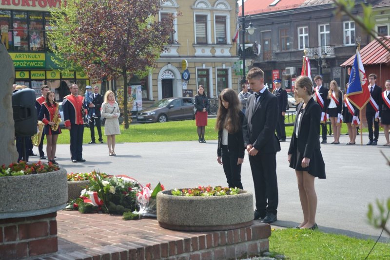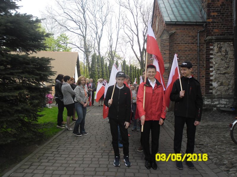 Wszyscy oni zgromadzili się w kościele parafialnym na mszy świętej w intencji Ojczyzny, którą sprawował ksiądz proboszcz. Nie zabrakło też pocztu sztandarowego szkoły. W tym roku licznie przybyli uczniowie z Podolsza- od najmłodszych dzieci- drużynę zuchów, przez uczniów szkoły podstawowej i gimnazjalistów oraz harcerzy- wyposażeni zostali w biało-czerwone flagi, które z dumą trzymali podczas mszy, a następnie nieśli w pochodzie na zatorski rynek. Najmłodszym dzieciom obecnym na uroczystości rozdali biało-czerwone wiatraczki, które wesoło kręciły się, napędzane majowym wiatrem.